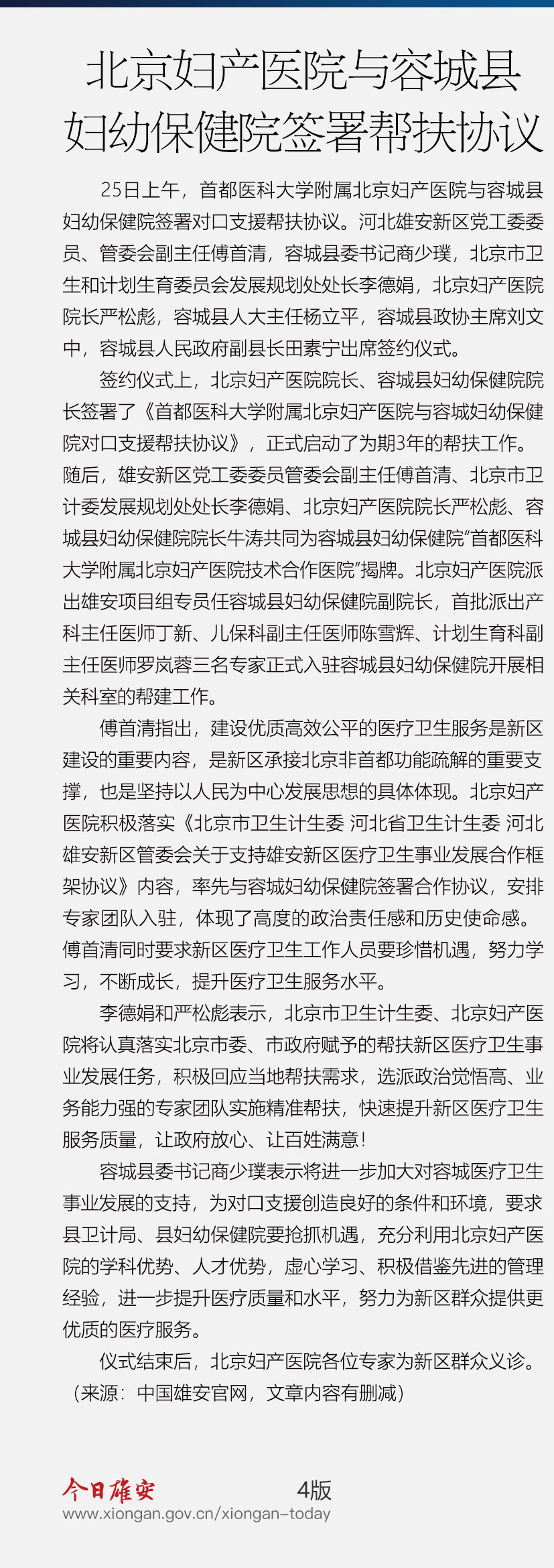 首都医科大学附属北京妇产医院对口支援容城县妇幼保健院签约仪式在容城举行