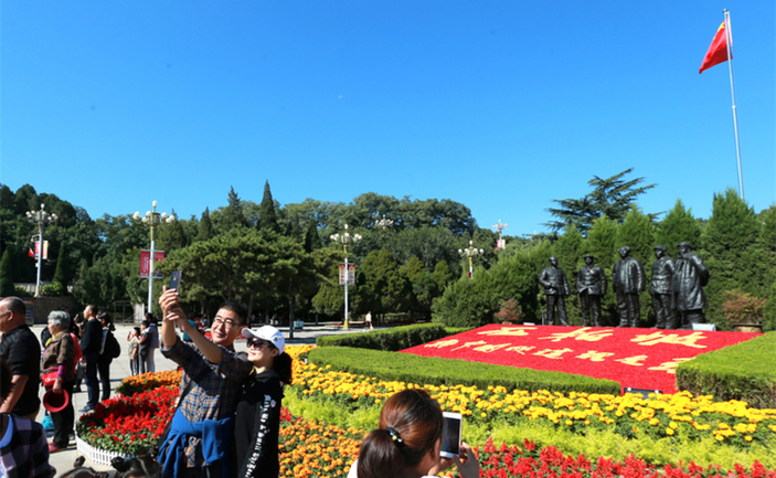 10月2日,游客在西柏坡景区参观旅游。(资料片) 陈建宇 康华杰摄