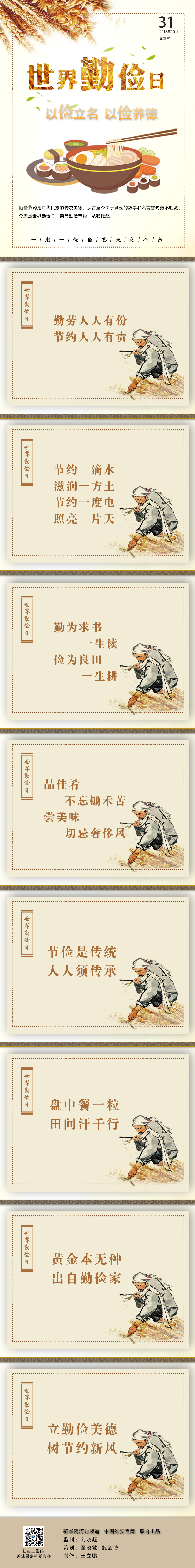 勤俭节约是中华民族的传统美德,从古至今勤俭的故事和名言警句数不胜数。今天是世界勤俭日,崇尚勤俭节约,从我做起。