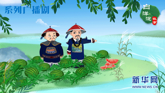 相传,乾隆皇帝为了领略白洋淀风光,时常带领一众文臣武将来到白洋淀中举行水围。这天,乾隆带着和珅与刘墉等人乘龙舟来到了白洋淀的一个淀泊——麦淀,途经淀边的一块瓜地,见瓜地里的西瓜个个长得又大又圆,让人不禁胃口大开,乾隆便亲自下船到瓜地品尝。