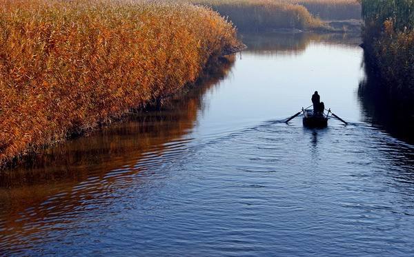 11月的白洋淀,芦花盛开,满淀的芦苇由青色变成了金黄。成片成片的金黄芦苇,或是紧紧抱在一起,或是呈倒置的伞状向四周散开,随风飘荡,别有一番滋味。