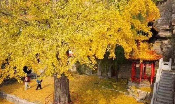 这里有一棵古老的银杏树,它生长在天桂山青龙观内,每到秋天,周围的树木褪下了绿色,映衬的这棵银杏树更加金黄夺目。从山上俯瞰,最吸引眼球的一定就是这棵古老的树。银杏最佳观赏时间为11月上中旬。