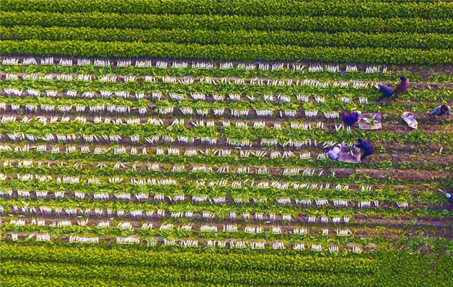 11月3日,大城县王香屯村秋丰种养殖农民专业合作社农民在收获白萝卜。