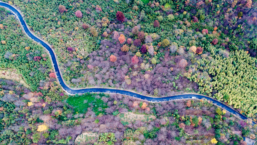 航拍:最美山乡秋正好 五彩缤纷霜满树