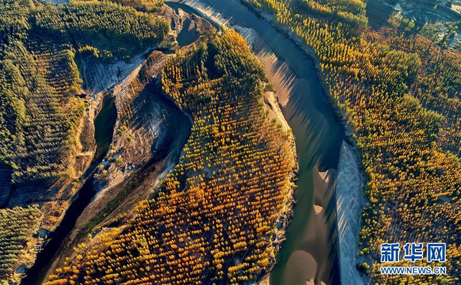 深秋时节,流经河北省乐亭县的滦河两岸色彩斑斓,宛如画境。新华社记者 杨世尧 摄