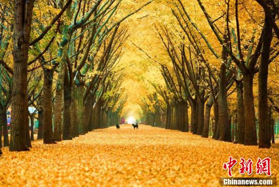 11月6日,连绵细雨中,第六届邳州银杏节暨第二届国际银杏峰会在江苏邳州举办。当天,邳州50万亩银杏林海同步进入童话世界,如同金色梦幻之海。满树的绿叶变成金黄,在细雨的“亲吻”下,落下片片黄叶,如同织成了金色的地毯一般。据了解,近年来,邳州依托当地银杏大规模种植资源,实施“银杏旅游+”战略,年吸引国内外游客数百万人次,成为乡村振兴的重要引擎。朱志庚 摄