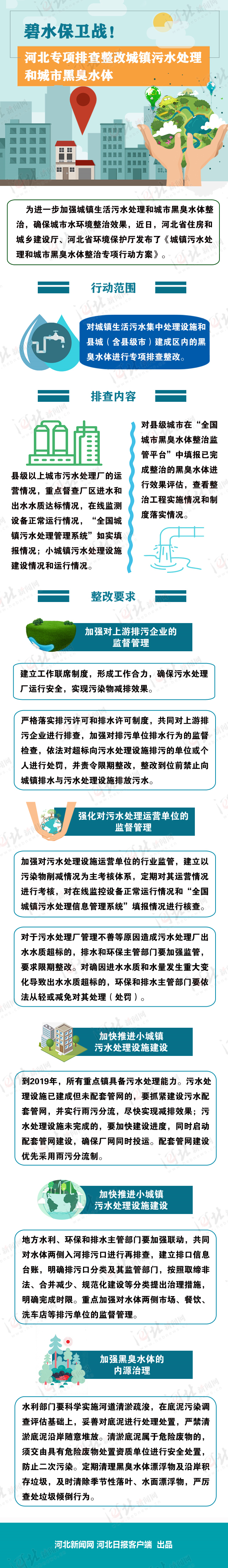 为进一步加强城镇生活污水处理和城市黑臭水体整治,确保城市水环境整治效果,近日,河北省住房和城乡建设厅、河北省环境保护厅发布了《城镇污水处理和城市黑臭水体整治专项行动方案》。