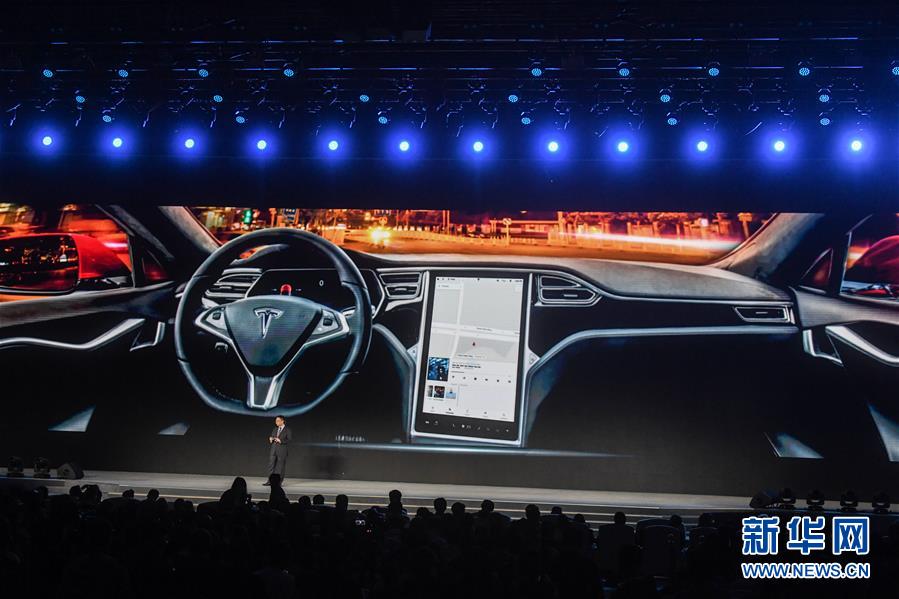 11月7日,特斯拉公司代表在介绍特斯拉智能售后服务。新华社记者徐昱摄