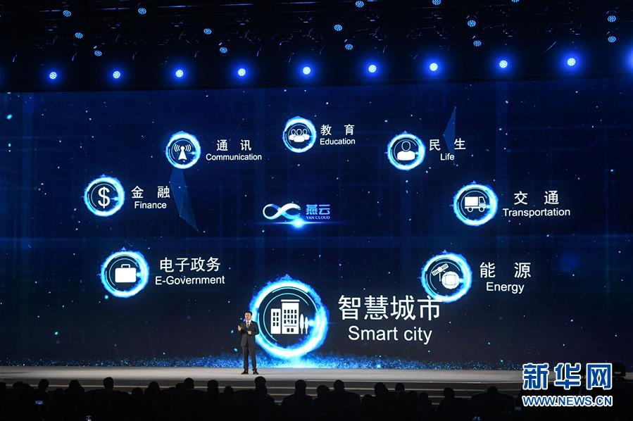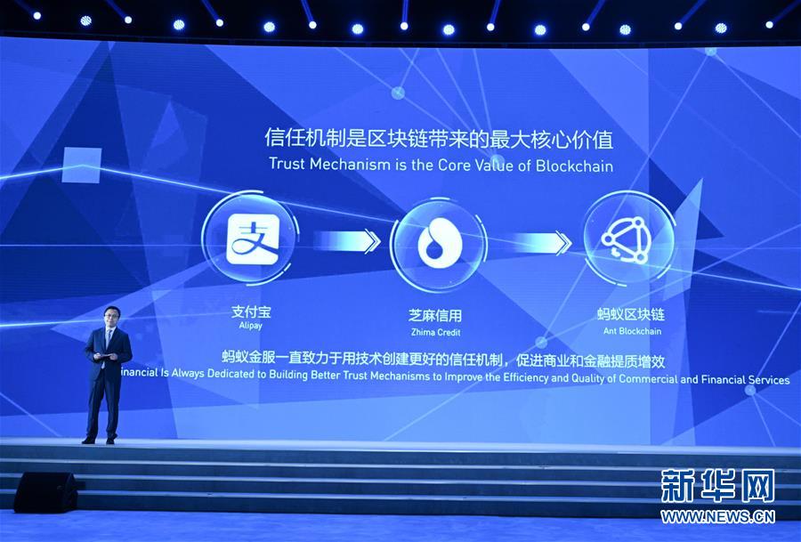 11月7日,蚂蚁金服首席执行官井贤栋在介绍蚂蚁金服金融级商用区块链平台。新华社记者陈晔华摄