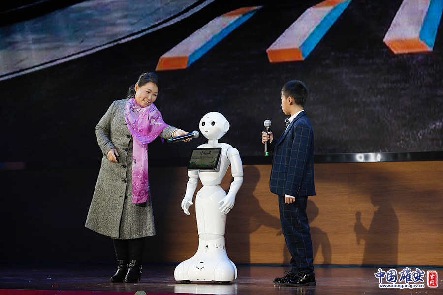 11月9日,白茹云、马子涵与智能机器人小达共同带来诗朗诵《雄安,美丽的家乡》。中国雄安官网记者毛鹤然 摄