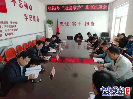为推进"纳污坑塘"治理工作,张岗乡召开"走遍雄安"观摩推进会,组织各村包村干部、驻村"第一书记"和环保所成员对乡域内所有"纳污坑塘"进行了再巡查,对治理效果好的坑塘进行了现场观摩,并要求各村、企积极对标对表查找不足,高标准收尾"纳污坑塘"治理工作。