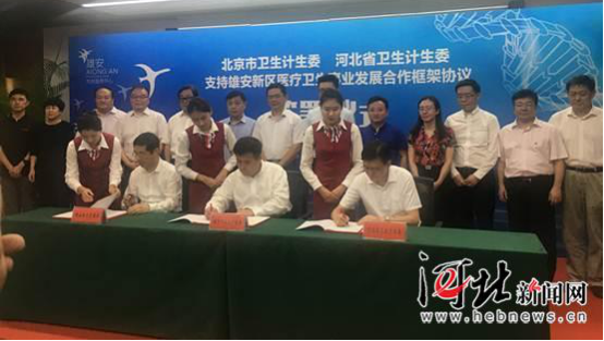 事件:北京市卫生计生委、河北省卫生计生委和雄安新区管委会联合签署了关于支持雄安新区医疗卫生事业发展合作框架协议。
