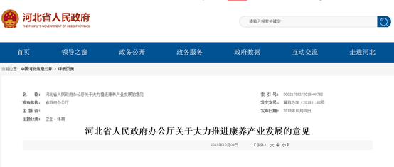 事件:省政府办公厅印发《关于大力推进康养产业发展的意见》提出,支持康养企业在雄安新区建立康养产业园区,加快形成一批康养行业关键技术、标准、专利等知识产权。