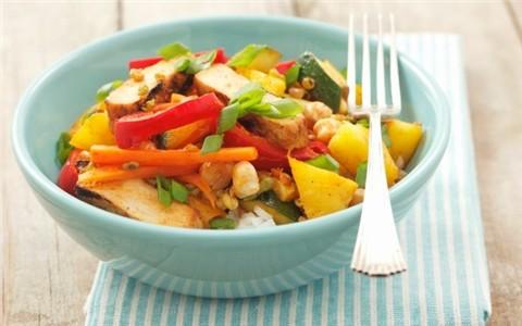 吃高GI食物时搭配GI较低的食物可以平衡食物的GI值,如:吃粥时可搭配蔬菜和粗粮;吃饭时先吃点蔬菜、肉类,再吃米饭,然后主食配菜慢慢吃,这样血糖升高的速度就比先吃米饭要慢。