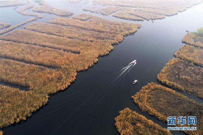 这是11月14日拍摄的白洋淀景区初冬风光(无人机拍摄)。初冬时节,位于河北雄安新区境内的白洋淀景区景色秀美、环境宜人。新华社发(柴更利 摄)