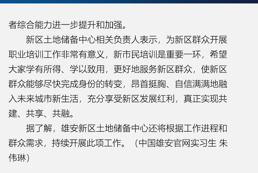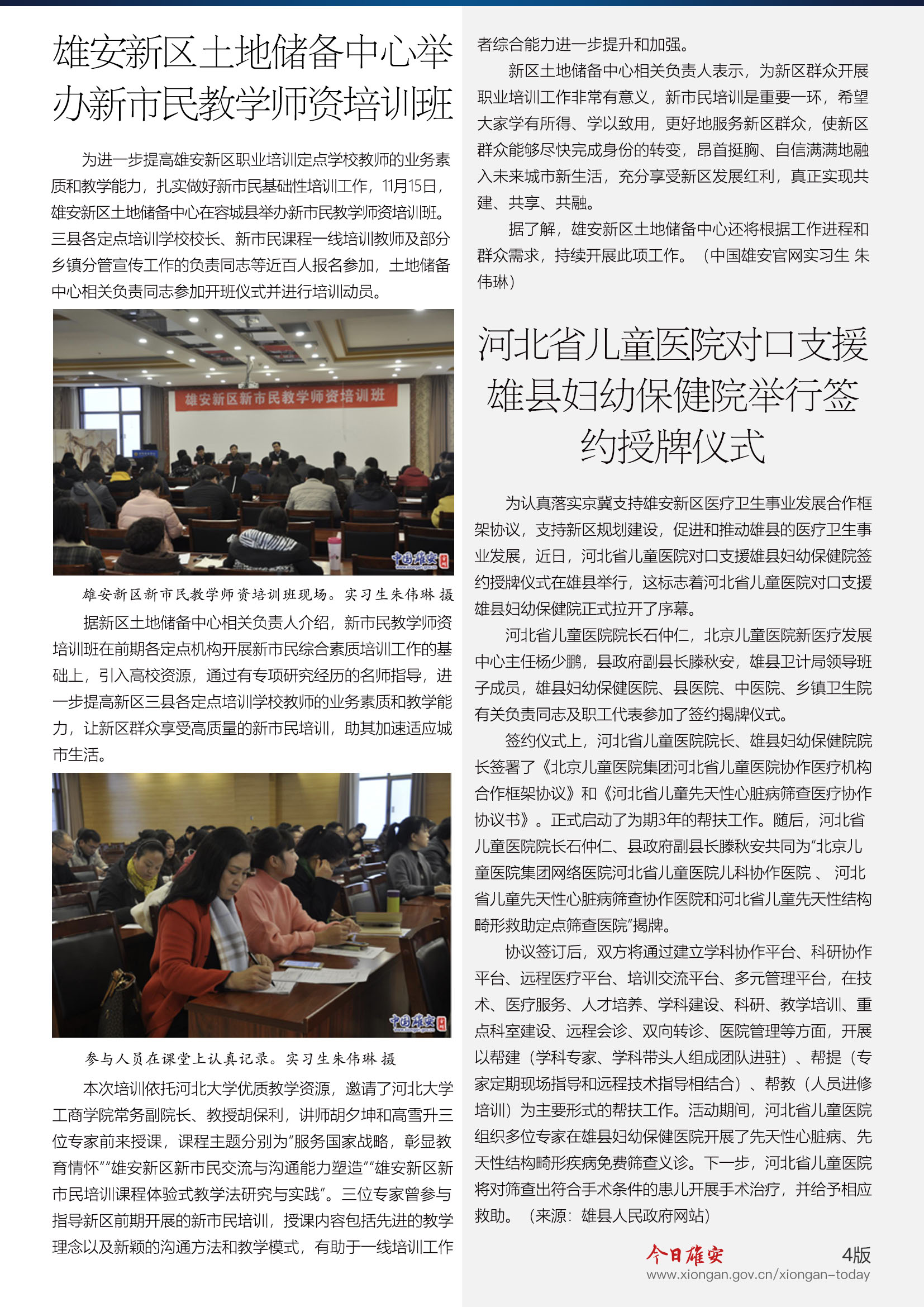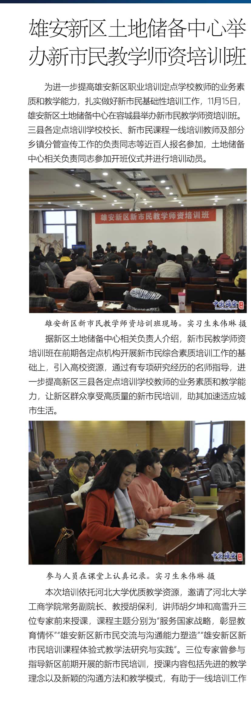 为进一步提高雄安新区职业培训定点学校教师的业务素质和教学能力,扎实做好新市民基础性培训工作,11月15日,雄安新区土地储备中心在容城县举办新市民教学师资培训班。