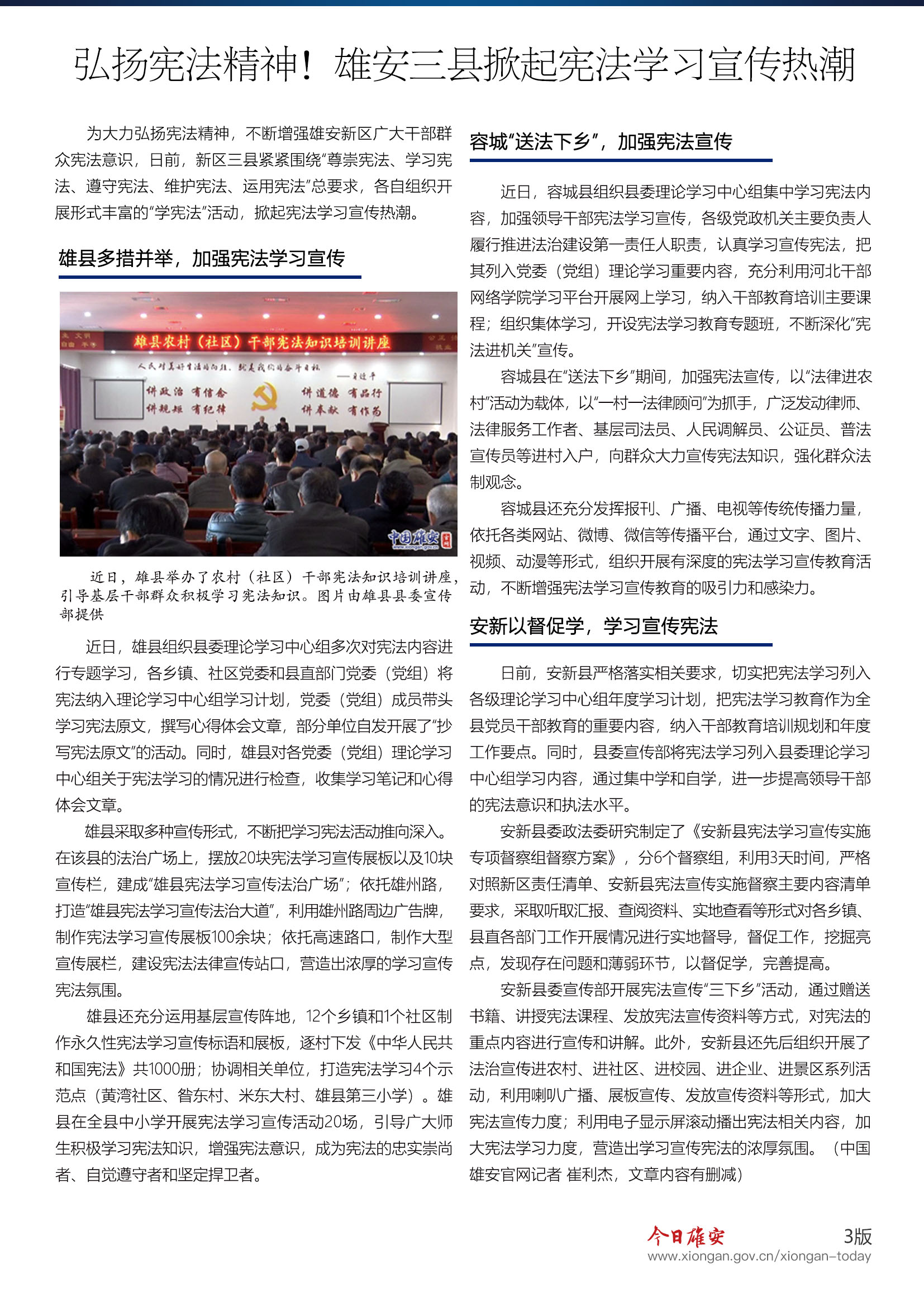 弘扬宪法精神!雄安三县掀起宪法学习宣传热潮