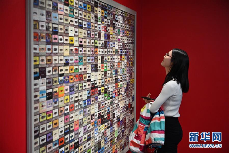 11月15日,一名参观者在“时光博物馆”里观看怀旧磁带墙。 新华社记者李鑫 摄