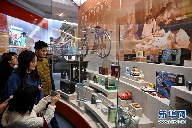 11月15日,参观者在“历史巨变”展区观看生活用品陈列。 新华社记者李鑫 摄