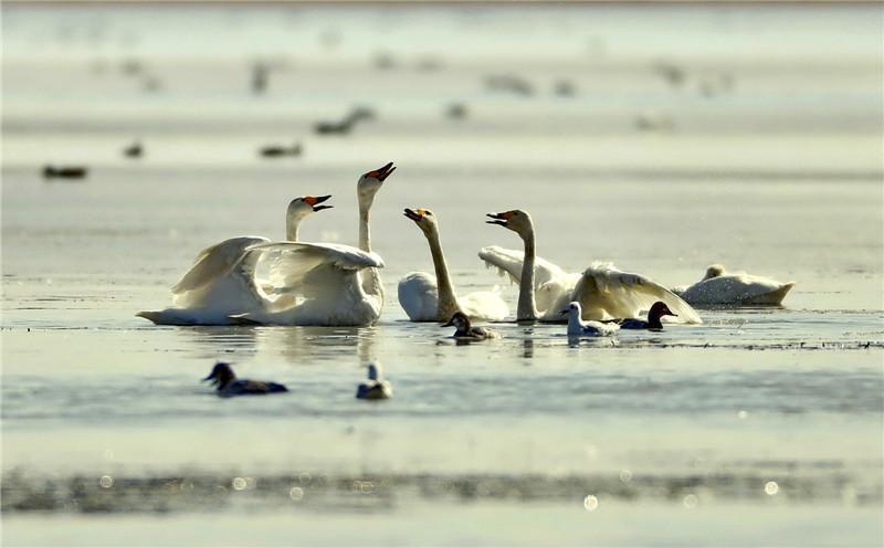 近日,大批天鹅等候鸟飞抵河北省张家口市察北管理区罗平湖栖息,为初冬时节的坝上地区增添了一道靓丽风景。 新华社记者杨世尧摄