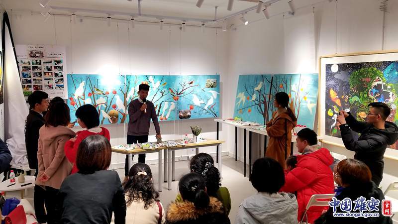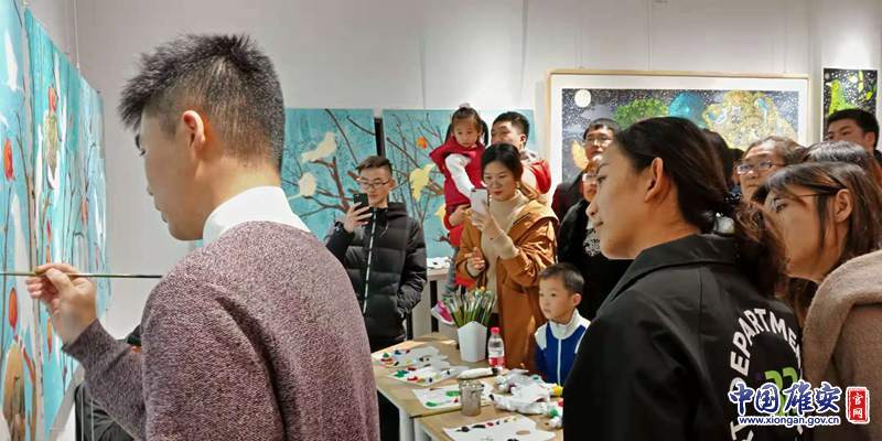 活动现场,毕业于中央美术学院的青年油画家刘恩钊为观众分享了自己的创作经历,讲述艺术在公共空间的应用及作用,探讨未来雄安的艺术发展模式及艺术与城镇的关系,并和观众共同完成一幅《百鸟图》作品。