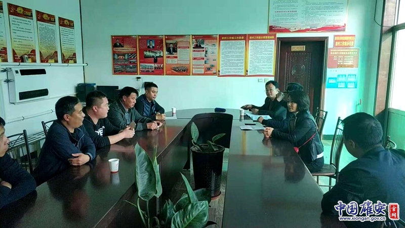 省环保厅工作专班负责人吴海梅在大河镇北郑村召开“走遍雄安”活动工作队会议。雄安新区生态环境局供图