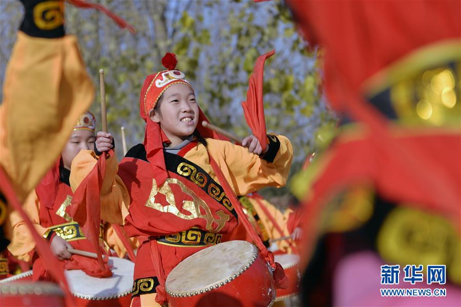 11月21日,河北省邢台市桥东区长信小学学生林子聪在练习打鼓。今年以来,河北省邢台市桥东区长信小学将当地民间音乐“长信排鼓”引入校园,开设校本课程,聘请民间艺人为学生授课,在丰富校园文化生活的同时,弘扬和传承中国传统文化。“长信排鼓”是集体表演项目,表演器具以鼓、锣、钹为主。表演者身着古战服,按阵形排开,大鼓指挥,小锣引导。表演者随着鼓点变化,不断变换队形。2007年6月,“长信排鼓”被河北省列为省级非物质文化遗产。新华社发(陈雷 摄)