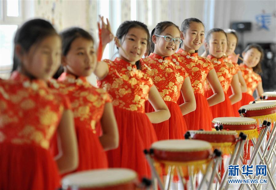 11月20日,在平泉市祥宁街小学,学生在表演“凌河大鼓”。近年来,河北省平泉市祥宁街小学挖掘本地乡土文化资源,利用课余时间开设民间曲艺“凌河大鼓”课程,让学生们感受传统文化的魅力。新华社记者 王晓 摄