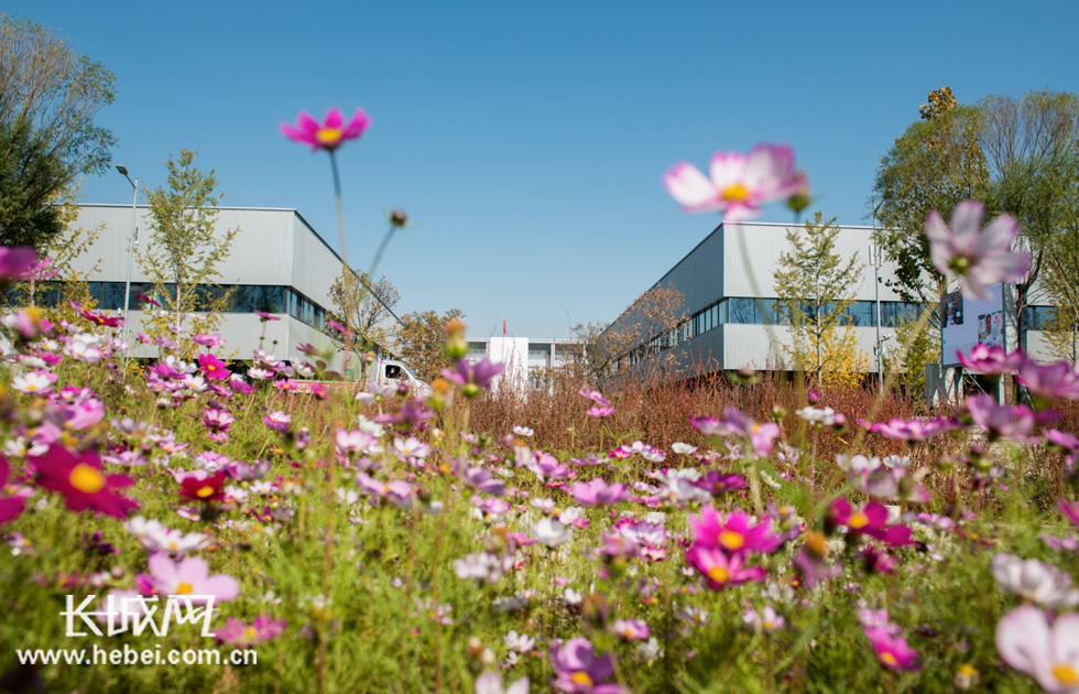 在格桑花的映衬下,雄安市民服务中心格外美丽。