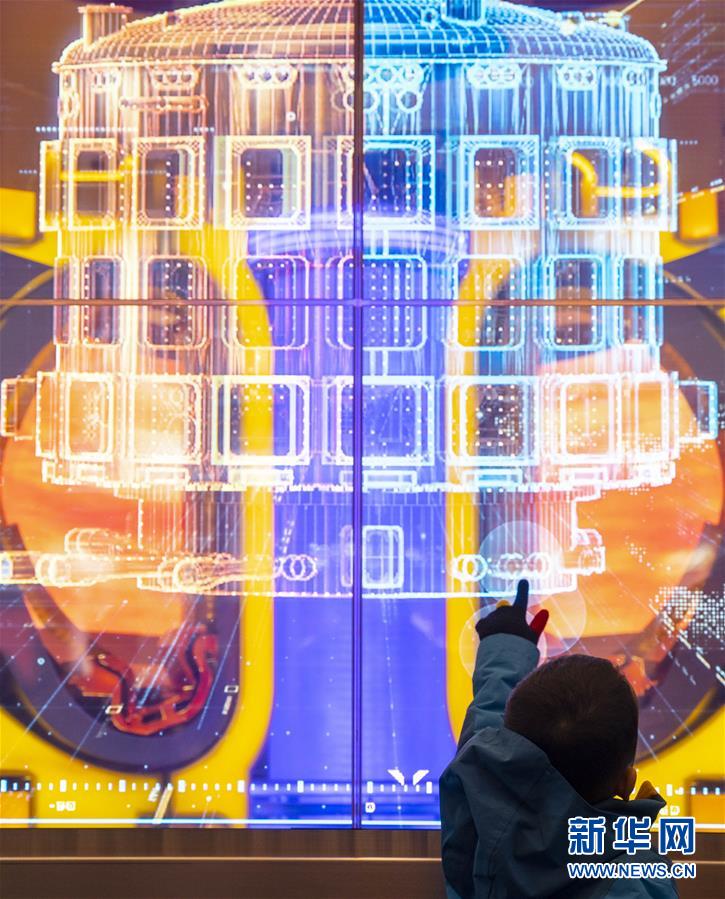 11月22日,一名小朋友观看国际热核聚变实验堆(ITER)模型。“伟大的变革——庆祝改革开放40周年大型展览”目前正在中国国家博物馆举行,展览上的各种科技创新展示与互动吸引众多参观者。新华社记者 才扬 摄