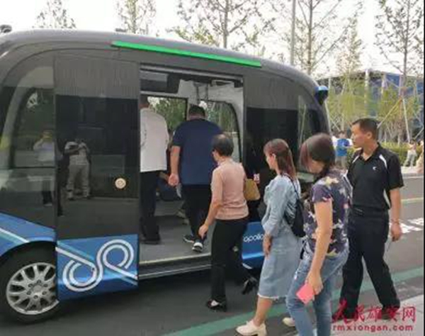 9月10日,来自雄安新区三县的近40名教师代表在雄安市民服务中心观摩和体验乘坐百度无人车。据了解,此次教师代表体验乘坐的无人车是世界首款量产L4级无人驾驶小客车。