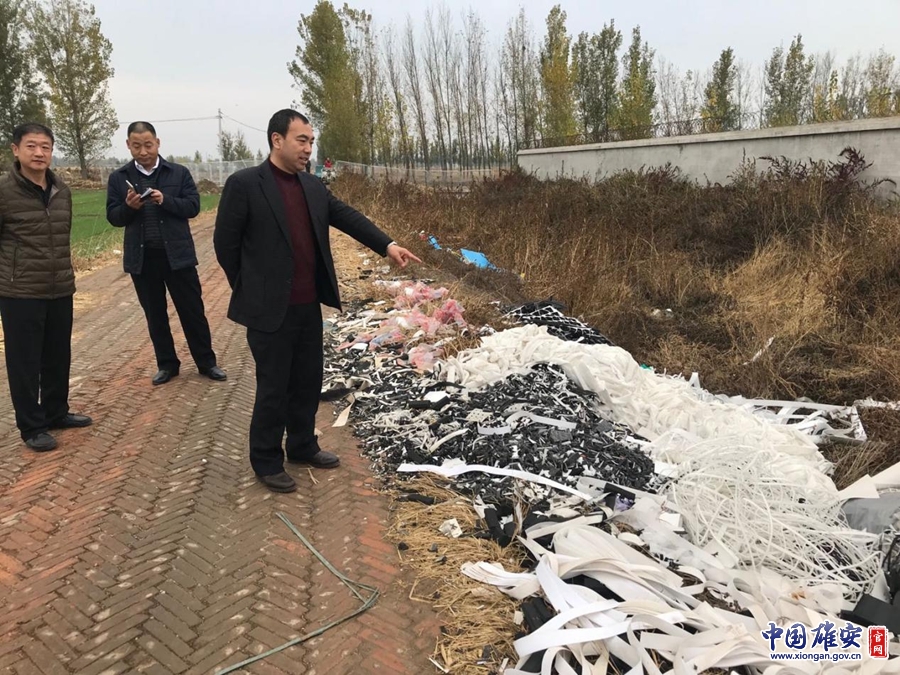 工作队首先抵达雄县城区地表水厂,对水厂周边进行了徒步排查,发现水厂西侧围墙外存在多处工业下脚料垃圾。雄州镇镇长冯志强介绍,此处垃圾已清理多次,但是仍有个别制衣厂在深夜私自倾倒下脚料,下一步将加强深夜巡查力度,杜绝此类现象再次发生。