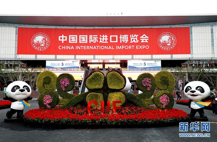 在国家会展中心(上海)场馆外,进博会吉祥物“进宝”准备迎接四方宾客(11月4日摄)。 新华社记者 陈飞 摄