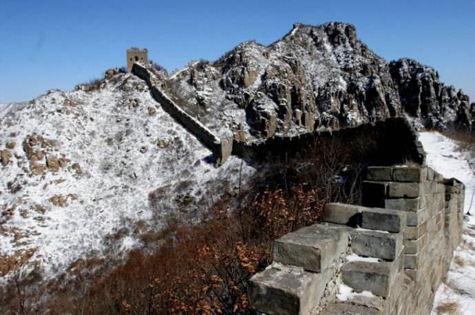金山岭长城的冬景别有洞天,作为保存最完好的一段明长城,即使是冬天,也有值得欣赏的景色。冬日的长城增加一丝沧桑感,像是诉说着一段段历史故事。雪中的长城景色更美妙,站在长城赏,就如同置身童话世界里一般,冰雪覆盖后的长城多了几分纯净和唯美,在从古至今400多年的岁月里,秀美的长城终于展示和之前不一样的一面。