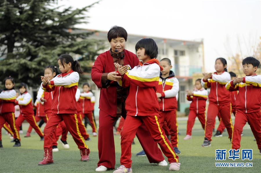 11月28日,邢台市桥东区南陈村小学学生在拳师的指导下学习太极拳。近年来,河北省邢台市桥东区积极开展传统文化进校园活动,让孩子们感受传统文化魅力,激发学习兴趣。新华社记者 牟宇 摄