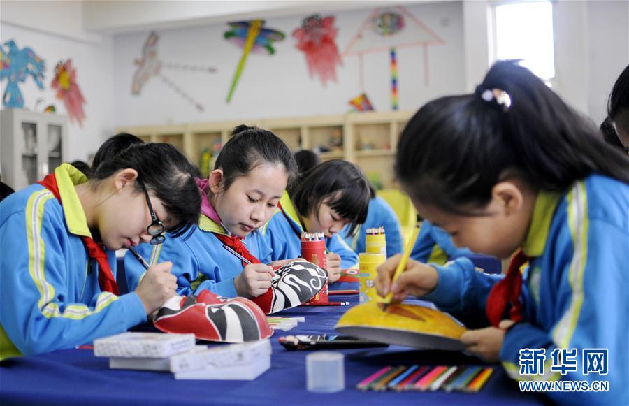11月28日,邢台市桥东区家乐园小学学生在绘制脸谱。近年来,河北省邢台市桥东区积极开展传统文化进校园活动,让孩子们感受传统文化魅力,激发学习兴趣。新华社记者 牟宇 摄