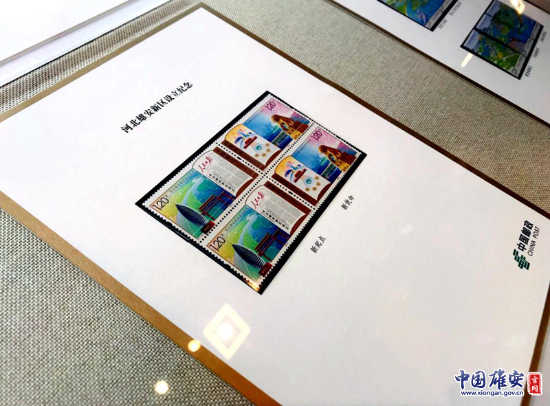 这是展厅内《河北雄安新区设立纪念》邮票。中国雄安官网记者李晏 摄