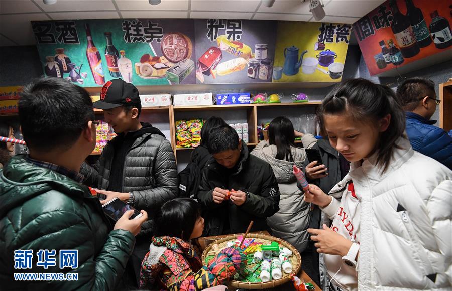 12月1日,观众在参观展览上的“时光杂货铺”。 当日,在北京国家博物馆举行的“伟大的变革——庆祝改革开放40周年大型展览”单日观众人数达5.9万余人次。展览开展以来,累计参观人数超过77万。 新华社记者 陈晔华 摄