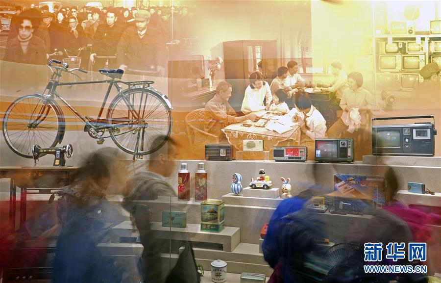 12月2日,在“伟大的变革——庆祝改革开放40周年大型展览”的“历史巨变”展区,观众被展现日常生活变化的展品吸引。