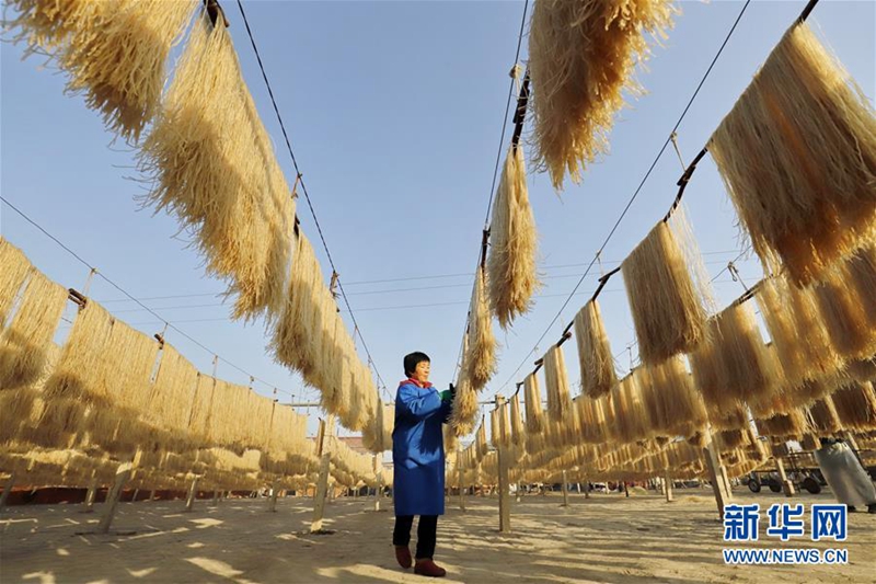 12月2日,遵化市平安城镇中滩村村民在晾晒粉条。 新华社记者 牟宇 摄