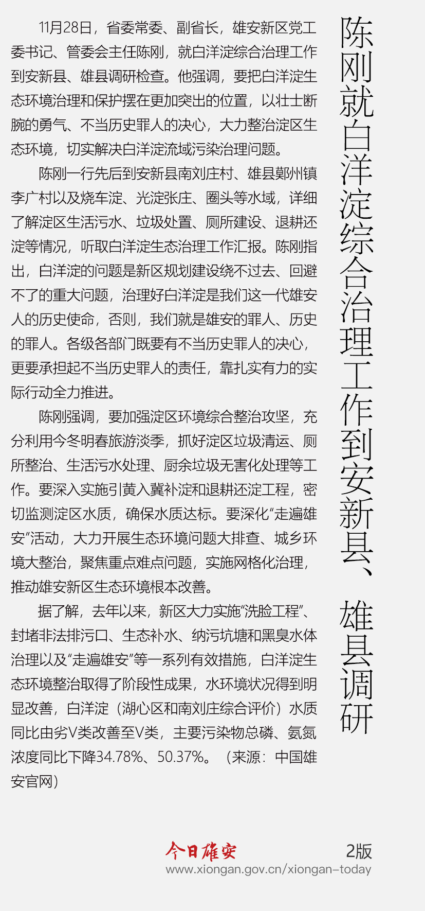【视频】陈刚就白洋淀综合治理工作到安新县、雄县调研