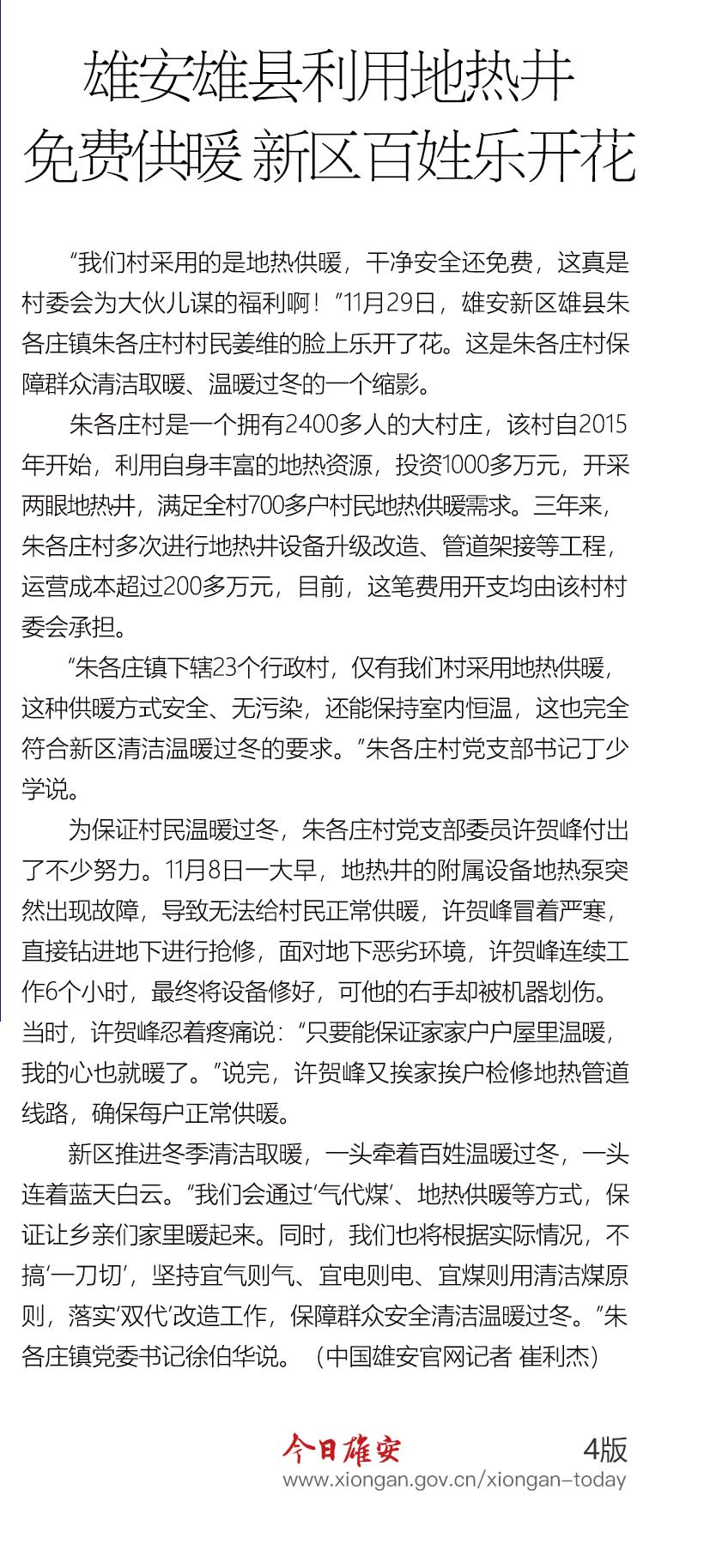 雄安雄县利用地热井免费供暖 新区百姓乐开花