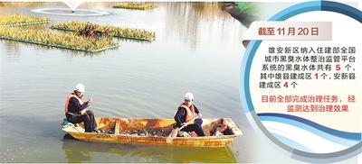 截至11月20日,雄安新区纳入住建部全国城市黑臭水体整治监管平台系统的黑臭水体共有5个,其中雄县建成区1个,安新县建成区4个,目前全部完成治理任务,经监测达到治理效果。