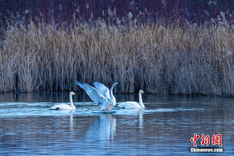 近日,青海省贵德县黄河湿地公园内,成群结队的天鹅群在岸边起舞嬉戏。今年,数百只天鹅迁徙到青海省贵德县黄河湿地越冬,为冬季的黄河增添了一份美丽与灵动。赵时春 摄