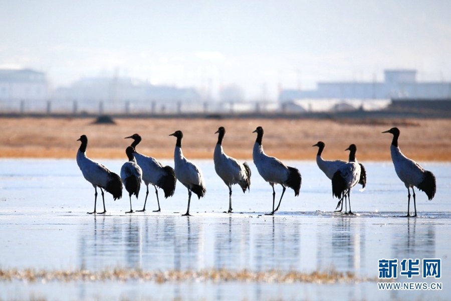 冬日的云南香格里拉纳帕海自然保护区,碧水蓝天、沼泽草甸,风景如画令人向往,而黑颈鹤的到来,更为这幅画卷增添了一抹灵动的色彩。