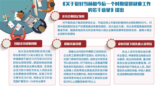 今年以来,我国就业形势总体稳定,稳中有进。但是,个别地区、个别企业还面临着一些新挑战。为稳定就业,扩大帮扶范围,增强支持力度,国务院日前印发《关于做好当前和今后一个时期促进就业工作的若干意见》,为相关部门和地方政府做好就业工作提供了明确的目标和方向——