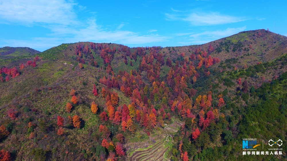 近日,无人机航拍江西石城县琴江镇长乐村石门嶂红叶景观,美不胜收。初冬时节,位于江西省赣州市石城县琴江镇长乐村的红叶进入最佳观赏期,满山红叶,如同从天上洒落的花瓣,成为冬季里最美的点缀。新华网杨益民 飞手:熊益康 摄