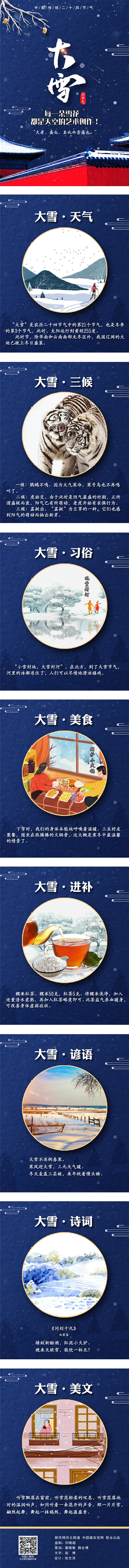“大雪”是农历二十四节气中的第21个节气,也是冬季的第3个节气,此时,太阳运行到黄经255度。此时节,除华南和云南南部无冬区外,我国辽阔的大地已披上冬日盛装。