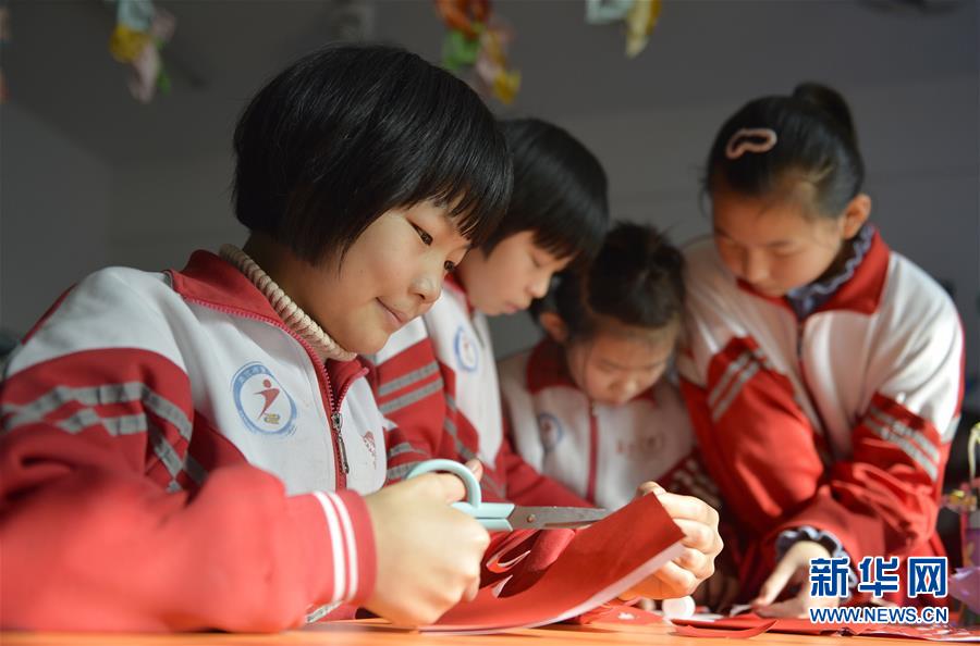 12月6日,河北省南宫市第一小学学生在练习剪纸。近年来,河北省南宫市实施民间艺术进校园工程,在18所中小学开设剪纸、草编、泥塑等手工课程,让孩子们近距离体验优秀民间艺术。新华社记者 牟宇 摄