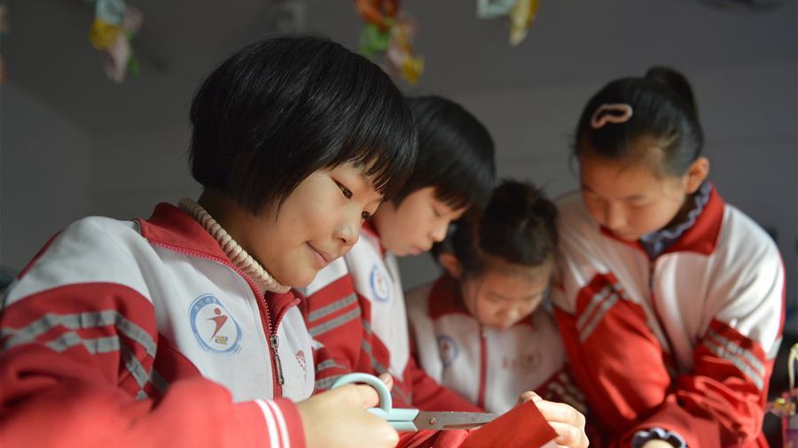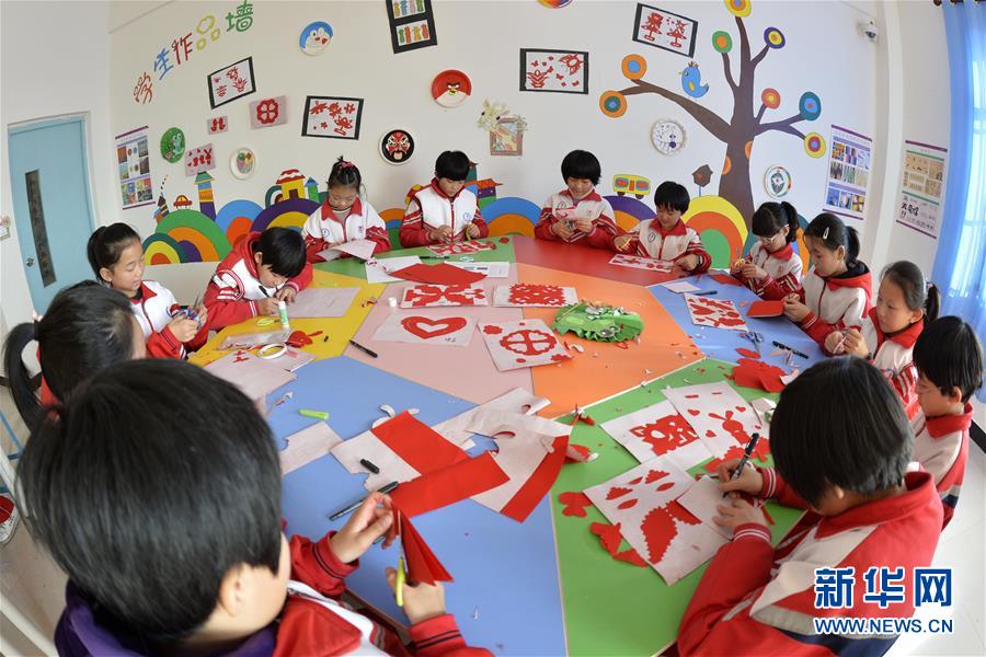 12月6日,河北省南宫市第一小学学生在练习剪纸。近年来,河北省南宫市实施民间艺术进校园工程,在18所中小学开设剪纸、草编、泥塑等手工课程,让孩子们近距离体验优秀民间艺术。新华社记者 牟宇 摄